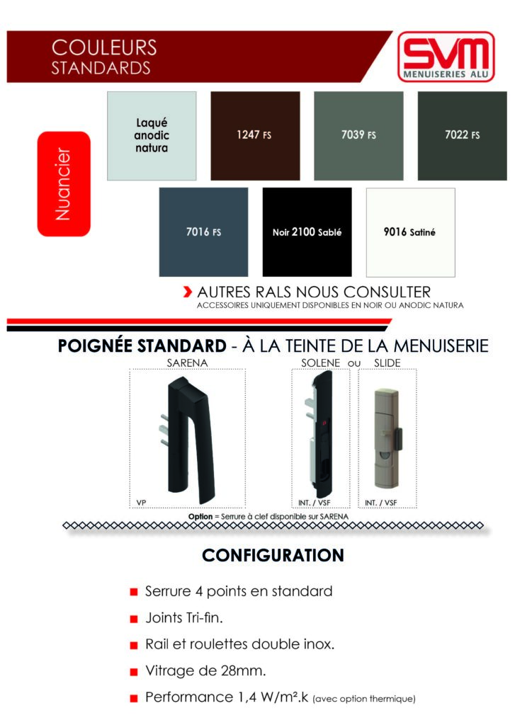 | Quincaillerie à la teinte de la menuiserie (sur coloris standard) |